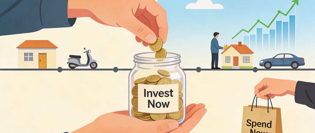 The gap between income and lifestyle is where wealth is born, and delayed gratification keeps that gap open. Choosing a modest car over an EMIs-heavy luxury one, renting wisely instead of over-stretching on a home, or resisting constant gadget upgrades preserves cash for assets. People who repeatedly delay lifestyle jumps when their income rises (avoiding “lifestyle creep”) build a surplus that can be directed into equities, businesses, or real estate.