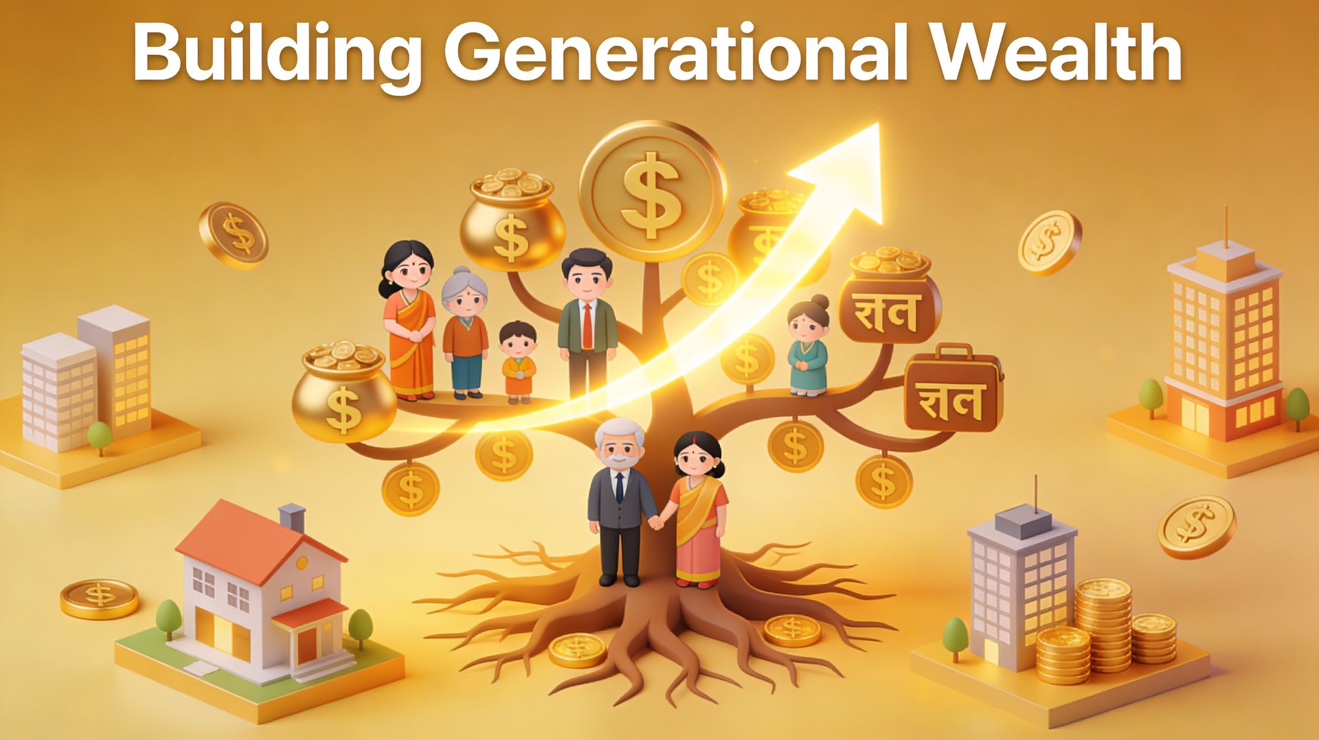 Building generational wealth in India means creating assets and habits that grow and pass smoothly to your children and grandchildren, breaking the cycle where most families lose money within 1-2 generations. It starts with disciplined saving, smart investing in income-producing assets, and legal planning tailored to Indian laws like wills, HUFs, and tax-efficient transfers.