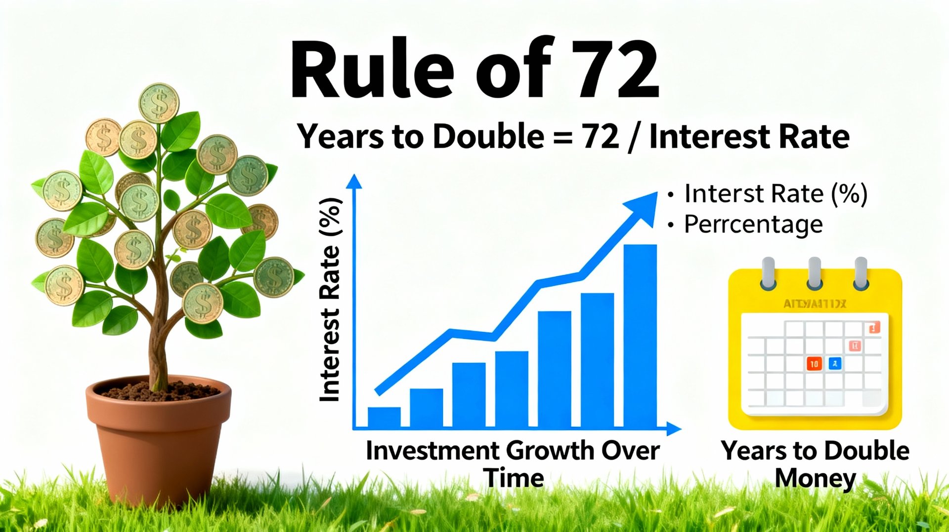 The Rule of 72 estimates how many years it will take for an investment to double at a fixed annual rate of return. You calculate it by dividing 72 by the annual return percentage. For example, if an investment yields 12% per year, it will roughly double in 6 years (72 ÷ 12 = 6). This rule provides a quick way to understand the growth potential of various investments without complex calculations.