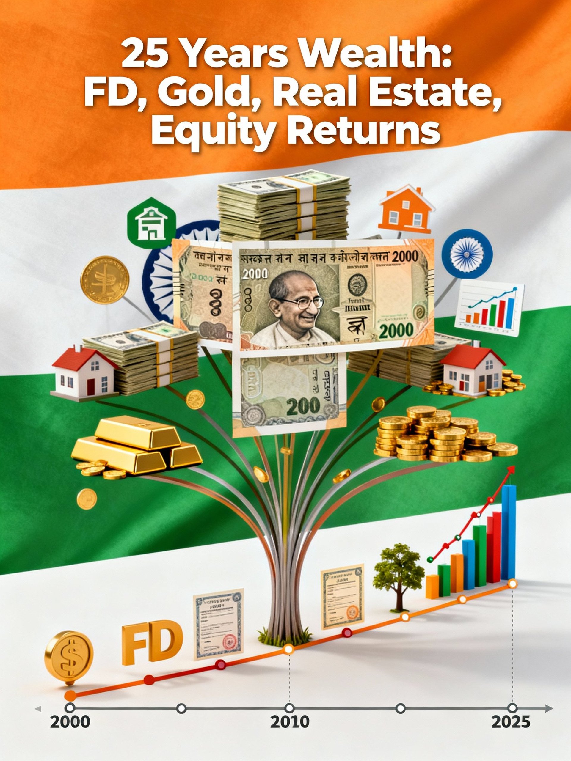 25 Years of Wealth Creation in India: FD, Real Estate, Gold, and Equity Returns (2000–2025)
